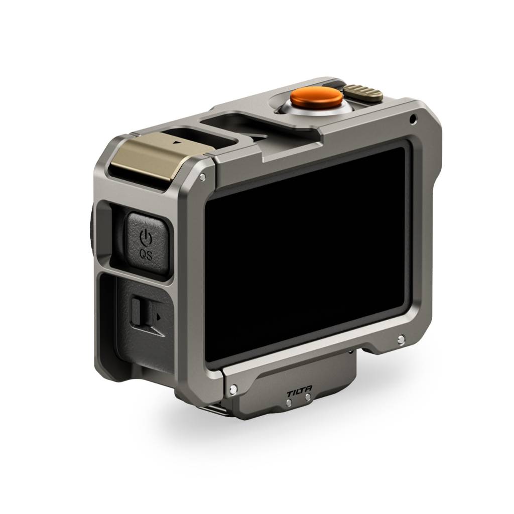 De Tilta Camera Cage for DJI Osmo Action 6 Base Kit is vervaardigd uit een aluminium legering. Dankzij de precieze pasvorm sluit de cage naadloos aan op je Osmo Action 6. Hij omsluit de camera stevig, zonder poorten, knoppen of batterij-deur te blokkeren. De cage heeft bovendien een ergonomische knop-extension. Daardoor start of stop je je opname makkelijker, zelfs wanneer de camera in een rig zit.