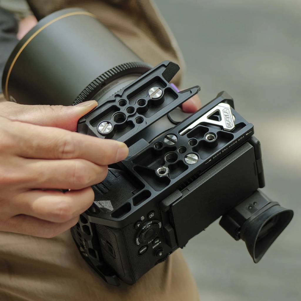 Deze cage is volledig afgestemd op de FX2, met behoud van poort toegankelijkheid, EVF zichtbaarheid en toegang tot alle aansluitingen. Locating pins helpen voorkomen dat accessoires gaan bewegen, wat belangrijk is voor stabiliteit op bewegende rigs. De ARCA bottom plate is compatibel met ARCA-standard statieven of gimbals (DJI standard). Je kunt rod-accessoires uitbreiden, extra handles bevestigen, of kabels netjes wegwerken via de meegeleverde clamps.