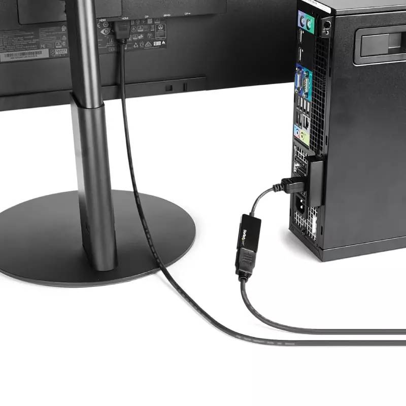 The DP adapter offers active conversion to ensure compatibility with any DisplayPort. In order to maintain 4K resolution when converting DisplayPort to HDMI, active video conversion is required. The active DisplayPort (DP) adapter is well-suited for delivering 1080p resolutions, as it is compatible with graphics cards that lack the capability to produce multi-mode DP++ signals, such as ATI Eyefinity™ cards.