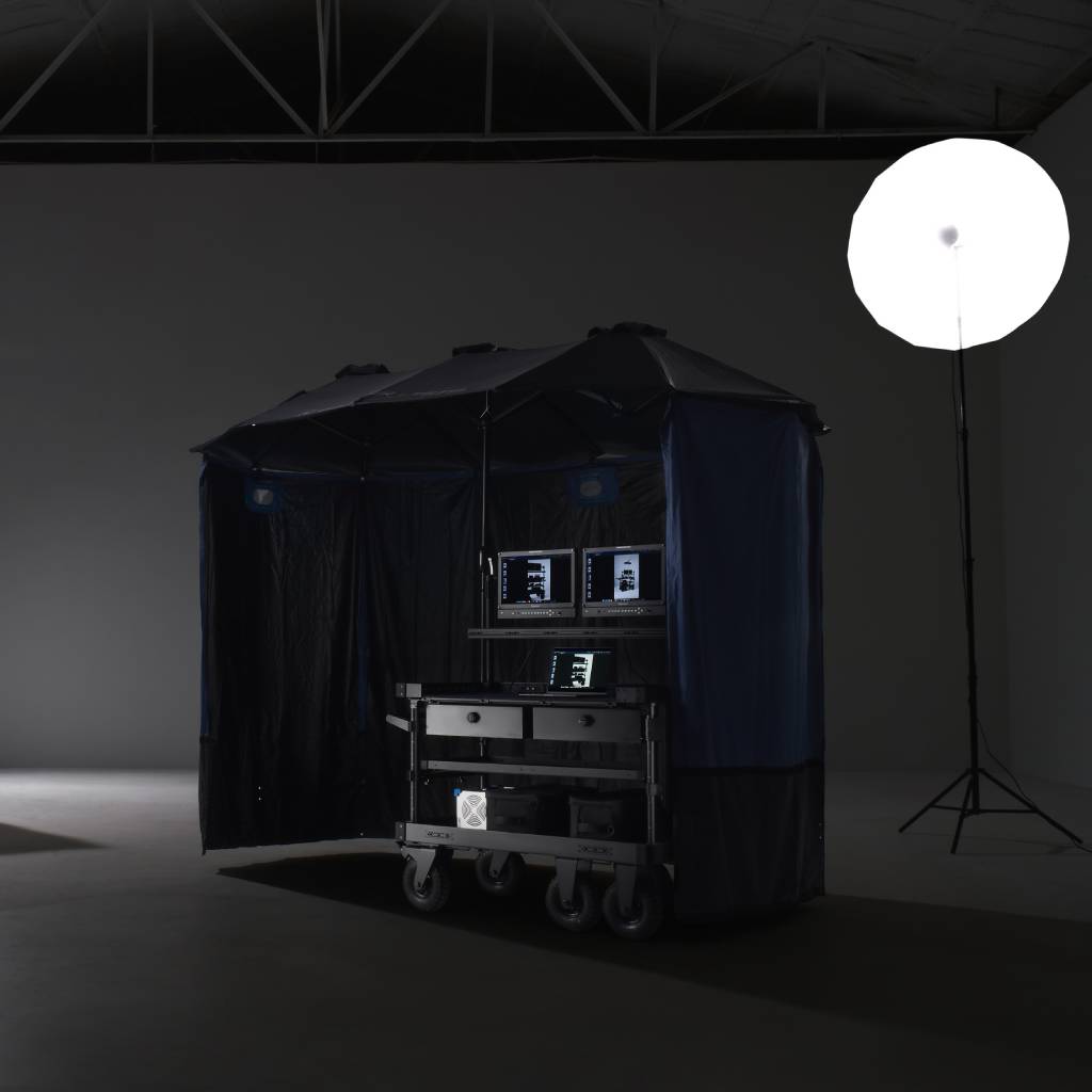 - Basis voor een blackout video village-setup met optionele sunshade-panelen.