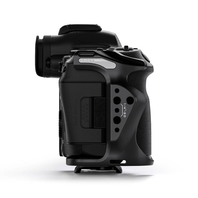 Deze halve cameracage biedt bescherming aan de camerabody en breidt de montagemogelijkheden voor diverse accessoires uit met behoud van het lichte gewicht. De onderkant en zijkanten worden vastgezet met schroeven, waardoor gebruik wordt gemaakt van de sterkte van het lichtgewicht ontwerp en er tegelijkertijd montagemogelijkheden voor accessoires zijn. De halve cage is voorzien van een polsbandhouder, 1/4″-20 schroefdraad met bevestigingspunt en een Arca-Swiss standaard bodemplaat. Siliconen kussentjes bieden bescherming voor de camerabehuizing en zorgen voor een veiligere verbinding. Aan de onderkant zit een multifunctionele magnetische schroevendraaier, handig voor het installeren en verwijderen van de cage. Er zijn twee polsbandhouders aan de gripzijde, een aan de bovenkant en een aan de onderkant, voor veiliger gebruik. Als je de kabelklem (TA-T68-CC-B) gebruikt, die apart verkrijgbaar is, voorkom je dat de kabel per ongeluk losraakt.