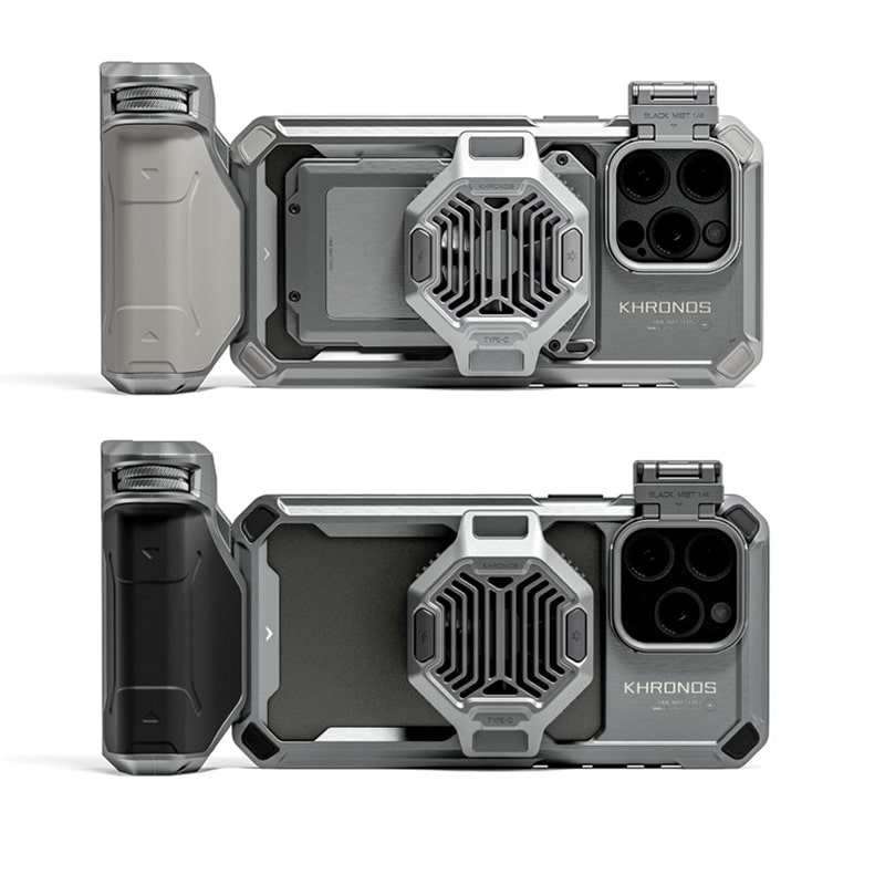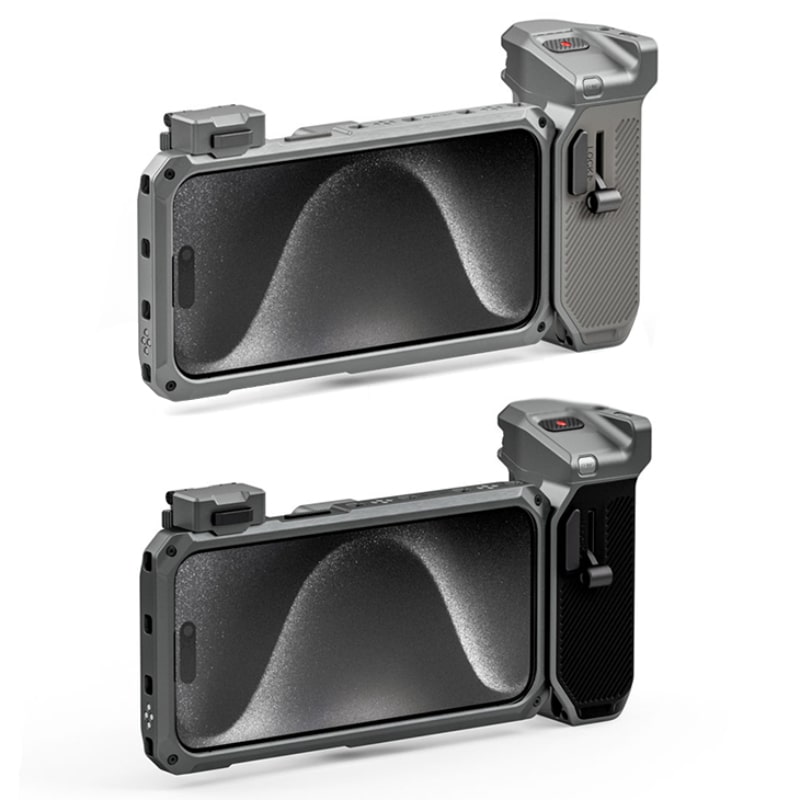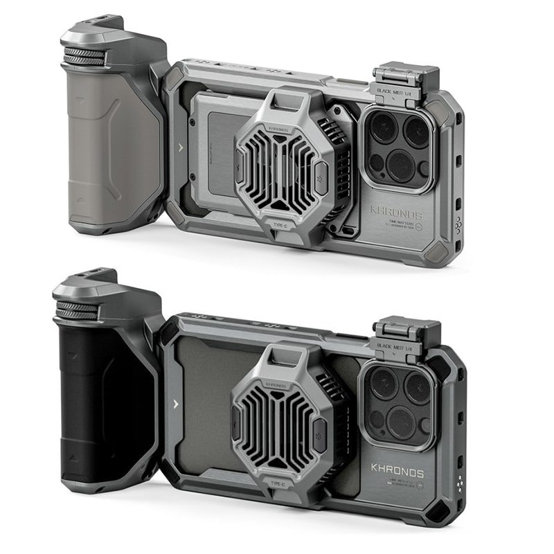 The Khronos iPhone 15 Pro Max Advanced Kit is designed for both models of the iPhone 15. This camera cage, inspired by the phone’s design, offers an incredible blend of elegance and functionality.