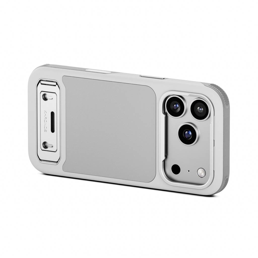 De Tilta Khronos Lite iPhone 17 Pro Max Case is ontworpen met oog voor zowel stijl als functionaliteit. Het materiaal is een combinatie van aluminium en kunststof waardoor het stevig is maar toch licht in gebruik. Dankzij de metalen ring rondom de cameralenzen en de verstevigde hoeken is extra bescherming ingebouwd, ideaal voor rigs, onderweg of on-the-go gebruik. Het slanke profiel zorgt ervoor dat je iPhone nog steeds comfortabel in de hand ligt of in een rig past zonder onnodige bulk.