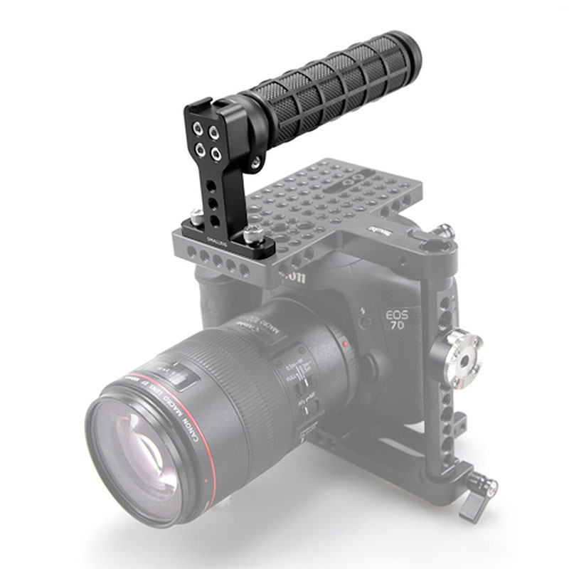 SmallRig Top Handle 1446 could be mounted to the top plate of the cage via two 1/4’’ screws. It provides lots of convenience when performing handheld shooting. The good-quality rubber handle is very good looking and the special design increases its friction during handheld shooting. It is equipped with a cold shoe on the top for attaching a microphone and other accessories.