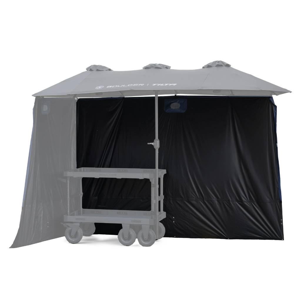 De Tilta Sunshade for Boulder Camera Cart Extended Umbrella is ontworpen om het video-village- en monitorzicht te verbeteren. Ideaal bij fel zonlicht of variabele lichtomstandigheden. Deze sunshade bestaat uit panelen die direct aan de Extended Umbrella worden bevestigd met geïntegreerde haken. Hierdoor zet je hem snel en veilig op. De verlengde lengte van de panelen zorgt ervoor dat ze tot aan de grond reiken. Je kunt ze stabieler maken met sandbags hierdoor. Dankzij verborgen magnetische bevestigingen sluiten meerdere panelen naadloos op elkaar aan, zodat je een vrijwel complete blackout-omgeving kunt vormen voor optimale zichtcontrole. Dit maakt de sunshade ideaal voor regisseurs, DIT’s en focus pullers die een overzichtelijke videoweergave willen behouden onder uitdagende lichtomstandigheden.
