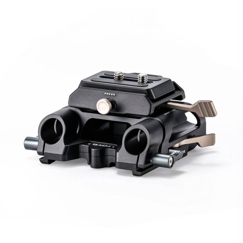 In hoogte verstelbare Arca Swiss 15 mm LWS grondplaat. Het hefbereik van 20 mm past bij verschillende hoogtes en de standaardhoogte van 85 mm kan worden gebruikt vanaf het midden van de staaf tot het optische midden. De afstand van het midden van de stang tot het platte oppervlak van de Arca-sleuf is 18 mm tot 38 mm. Het hendelslot met uitstekende bediening kan met één druk op de knop snel en veilig worden vergrendeld.