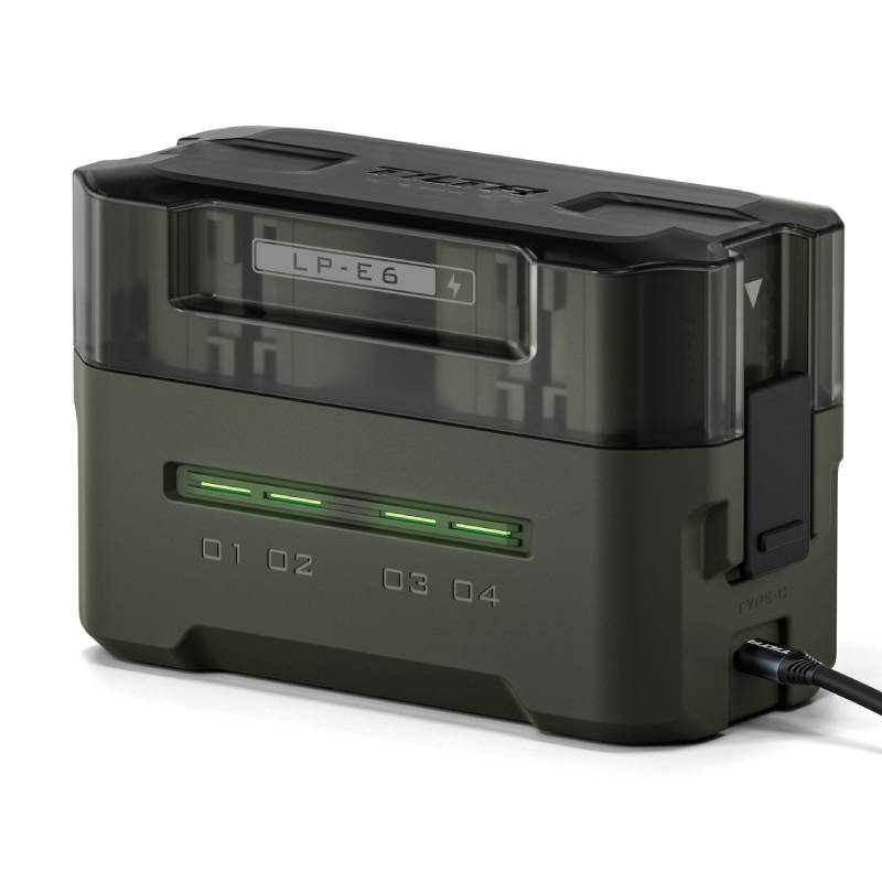 Batterijlader voor 4 batterijen van het type Canon LP-E6P oplaadbare Li-ion Batterijen. Inclusief 4 batterijen TLP-E6NH,