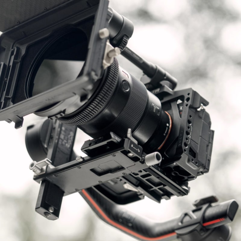 The bottom plate comes with an Arca Swiss connection which can be easily mounted onto the DJI RS3 Pro / RS3 / RS2 .