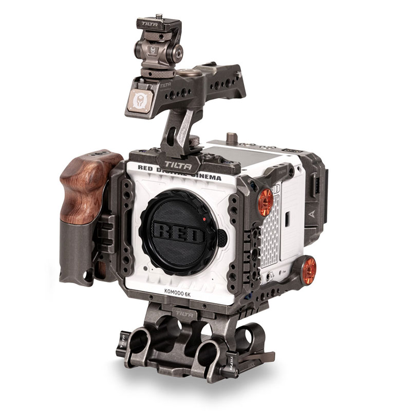 De Tilta TA-T08-E is de meest uitgebreide camera cage voor de RED KOMODO 6K camera op de markt. De kit bestaat naast de full cage, de meest gekozen bijhorende accessoires waaronder een 15mm rod baseplate, een top handle, right side wooden handle, 15 mm rods van 20cm etc. Kijk voor alle onderdelen in het tabblad IN DE DOOS.