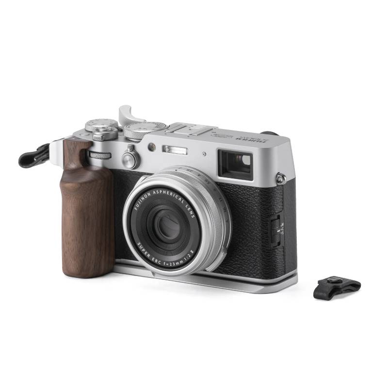 - Mounting Baseplate with Wooden Grip for Fujifilm X100VI – Silver